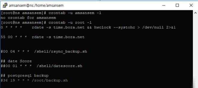 - 리눅스에서 자동적으로 쉘 스크립트나 프로그램 명령을 등록하는데 가장 자주 사용되는 것이 crontab이다.