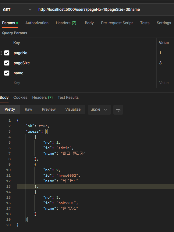 // users 목록을 조회합니다.